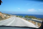 except the topless people turns out to be a granny! There were some tavernas there too! Back in the car, we carry on south.