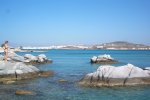 Heading back towards the town we try to the beach. It's a bit windy so we decide not to settle down. Dan however finds a cuttlefish bone and decides to make a boat. Take one cuttlefish bone and a twig and you have a boat! Mark I doesn't fair too well but Mark II (with the addition of another twig on the bottom - aka a keel) sails for miles! (that's Lorna miles btw) After a mooch round the town and a glass of coke, we board the 3.30pm ferry back to Paros and back to our apartment where there's just enough time for a lie down by the pool before we have to think about getting ready for dinner.