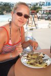 As it was our last night with Herman, we made the most of him and went to Noussa for dinner (my turn to be des) We found a very nice restaurant in the old harbour but had to quickly run away when they gave us the menu because it was ALL fish! In the end we found somewhere else which looked nice on the seafront and where I could eat meat.