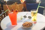 busier than any of the beached on Paros. Getting hotter we went in search of another cool drink. Dan decide to try a frappe